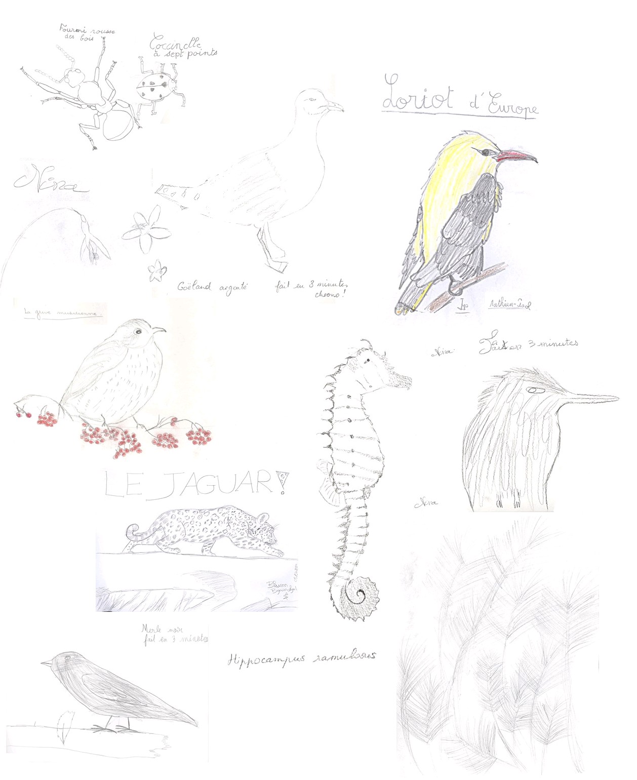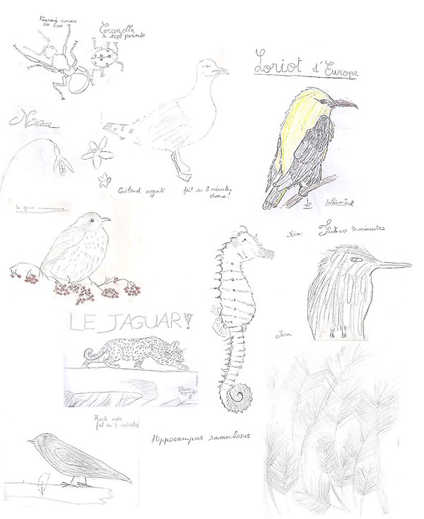 Comme le précise Gaël, dans la nature, le dessinateur est bien souvent confronté à la fugacité de l’instant. Dessiner un oiseau est bien plus long que le temps qu’il passe sur une branche, il faut réaliser un croquis en photographiant visuellement l’oiseau. C’est tout naturellement que l’on en vient à croquer un animal en trois minutes chrono. Le jeu plaît et il est à parier que bon nombre de nos naturalistes en herbe vont s’entraîner à la maison …