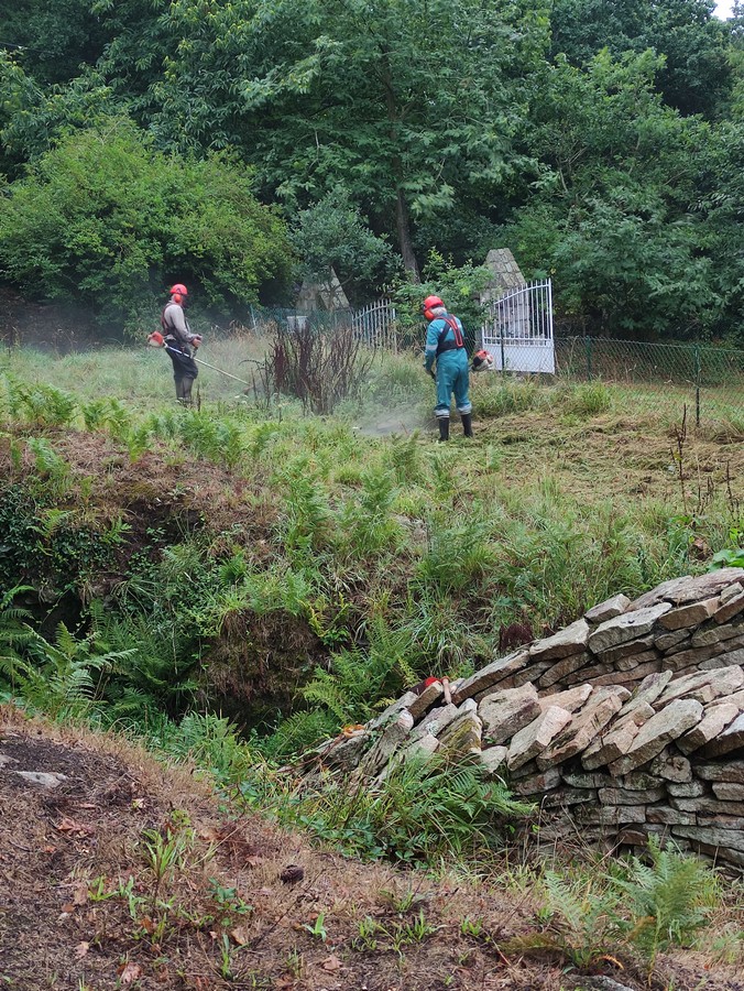 C’est la reprise à PHA! Petite équipe ce mardi, nous étions 6 pour rafraichir le site de Menez-Perroz avec la sculpture monumentale de Richard Harris (1992) et vider le lavoir en contre-bas de sa boue.