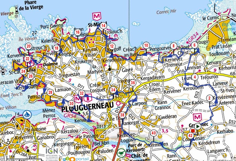 Pour réaliser ce circuit nous vous conseillons de vous munir de la carte IGN Plouguerneau Les Abers – IGN 0416ET.